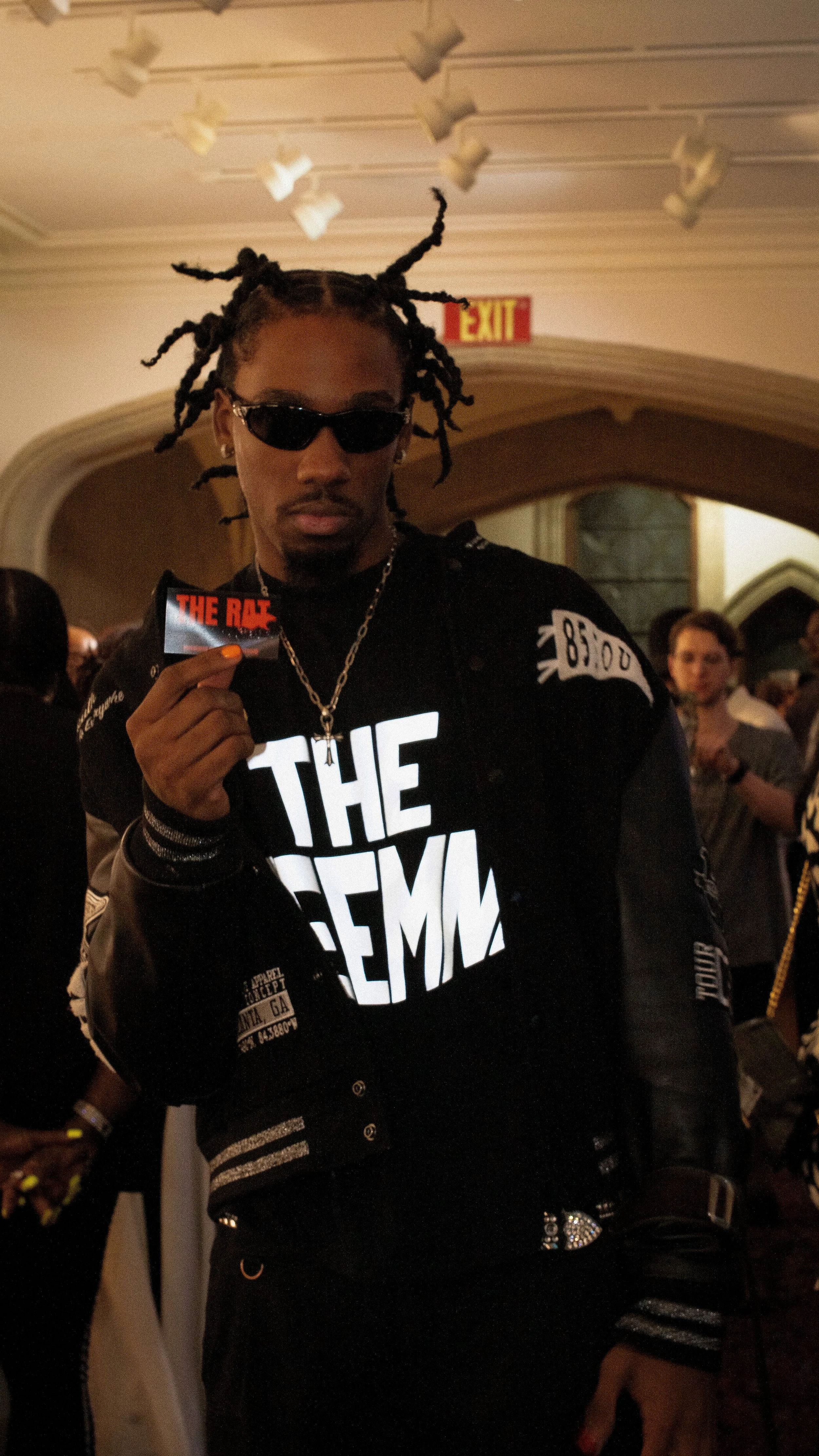 Musical artist Zoey Blunko stood out with bold accessories in red accents.
