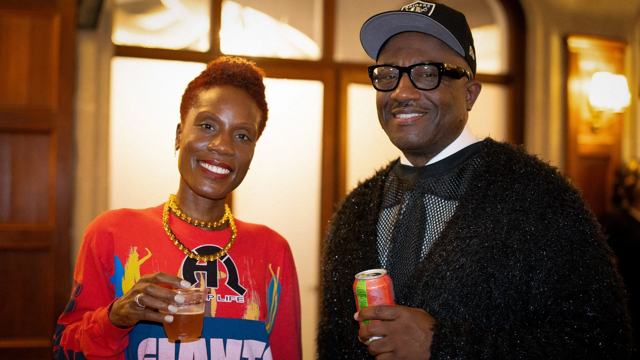 Two guests enjoyed the party downstairs before heading up to the DJ set.