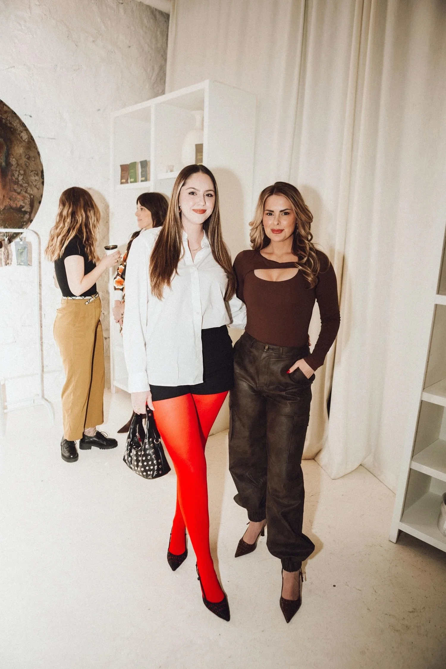 Fashion influencers Erin Foley and Emily Manns pose for a pic.