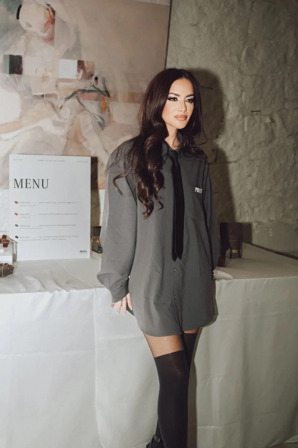 Roxanne Kaiser, Founder of Proxy Wellness, Serial Entrepreneur and Mental Health Advocate, wore a custom t-shirt dress embroidered with the Proxy logo.