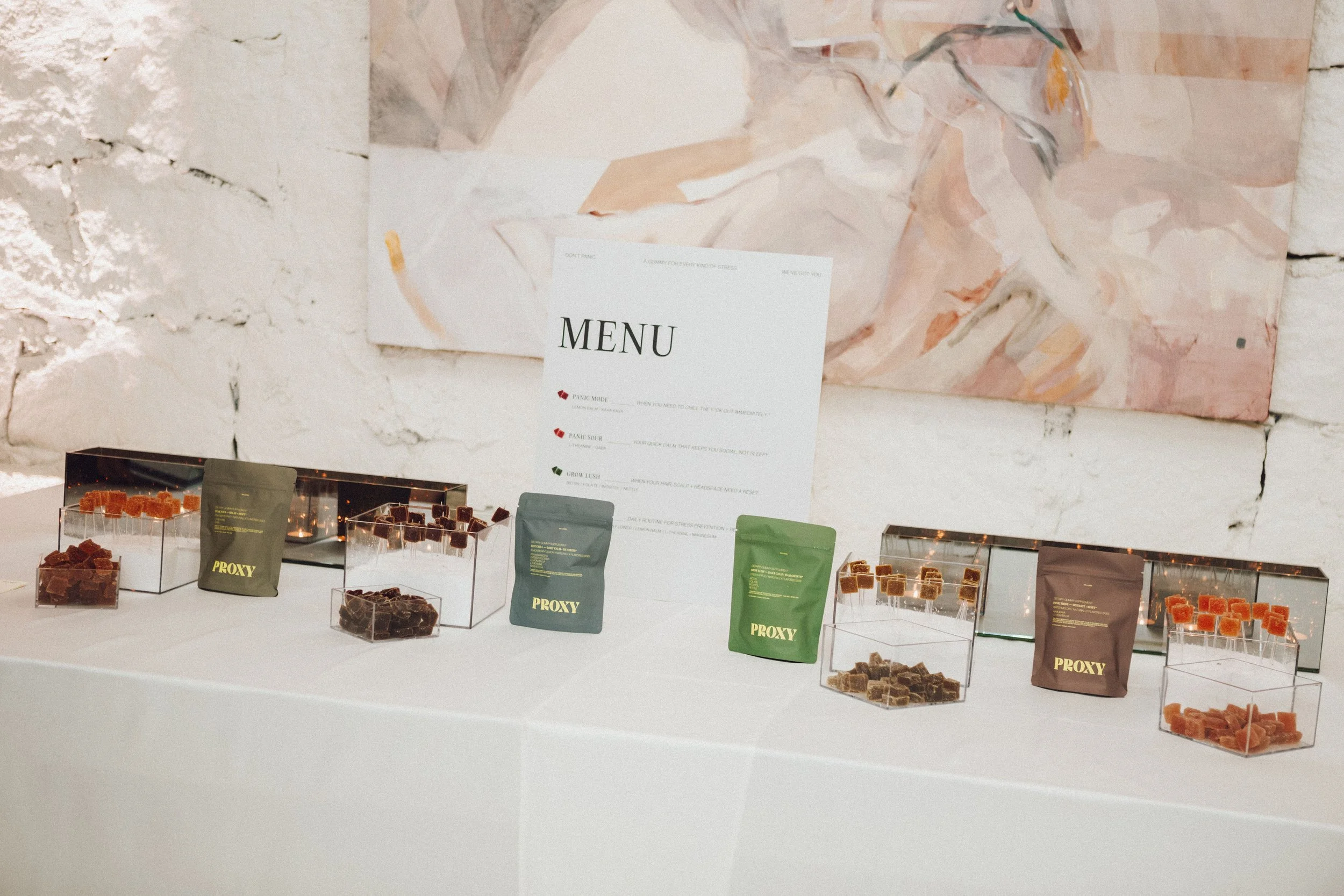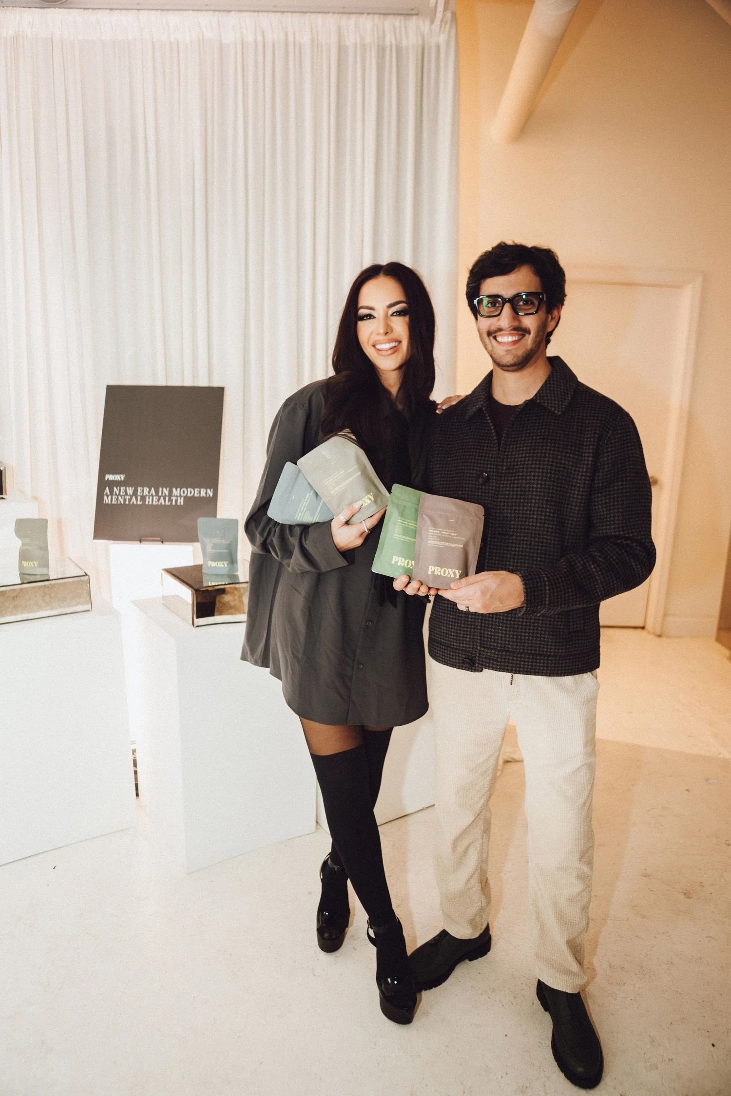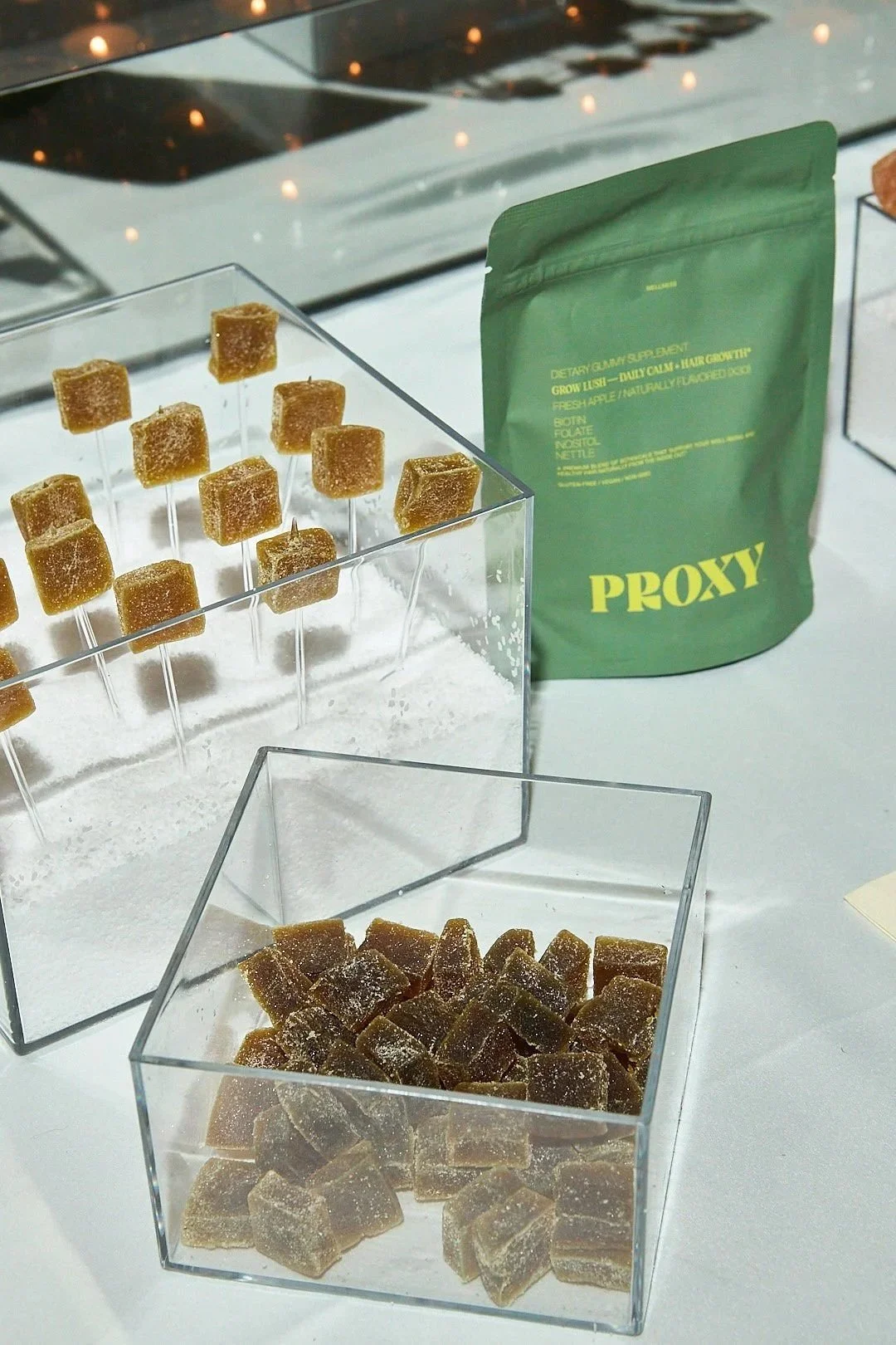 The evening then transitioned into a larger unveiling party that fully activated the space at Memento Gallery. Guests mingled throughout immersive brand moments featuring gummy tastings, a full bar, creative product displays, and photo opportunities, while cookies and popcorn were passed. Thoughtful takeaway bags rounded out the experience, celebrating a meaningful next chapter for Proxy Wellness. While the formulations remain unchanged, the updated packaging—designed by graphic designer Dara Paryas—introduces a refined visual identity rooted in calm and intentionality.